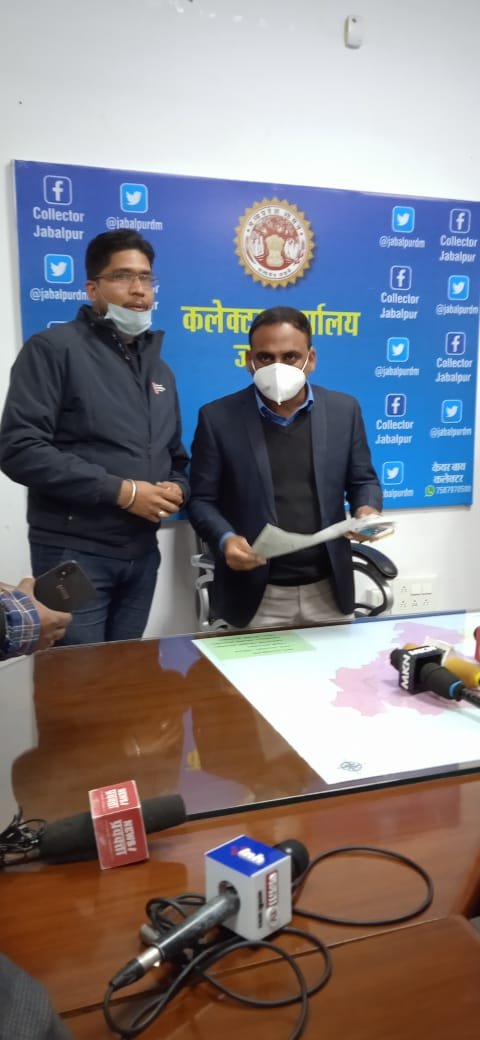 पत्रकार वार्ता के उपरांत दैनिक जबलपुर दर्पण समाचार पत्र की प्रति दिखाकर के नवागत कलेक्टर इलैयाराजा टी का संस्कारधानी जबलपुर में स्वागत शुभकामनाएं दी।