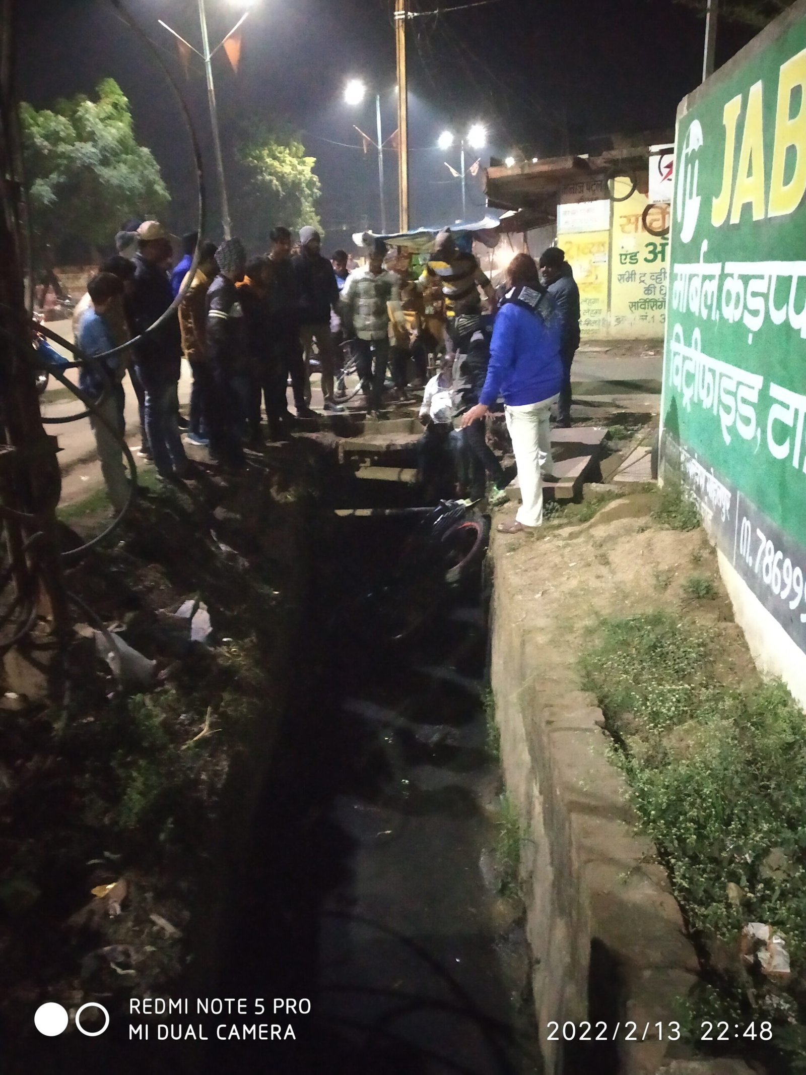 अमखेरा रोड़ पर बने नाले में 48 वर्षीय बुजुर्ग जा गिरा:स्थानीय लोगों ने गाड़ी समेत बाहर निकाला
