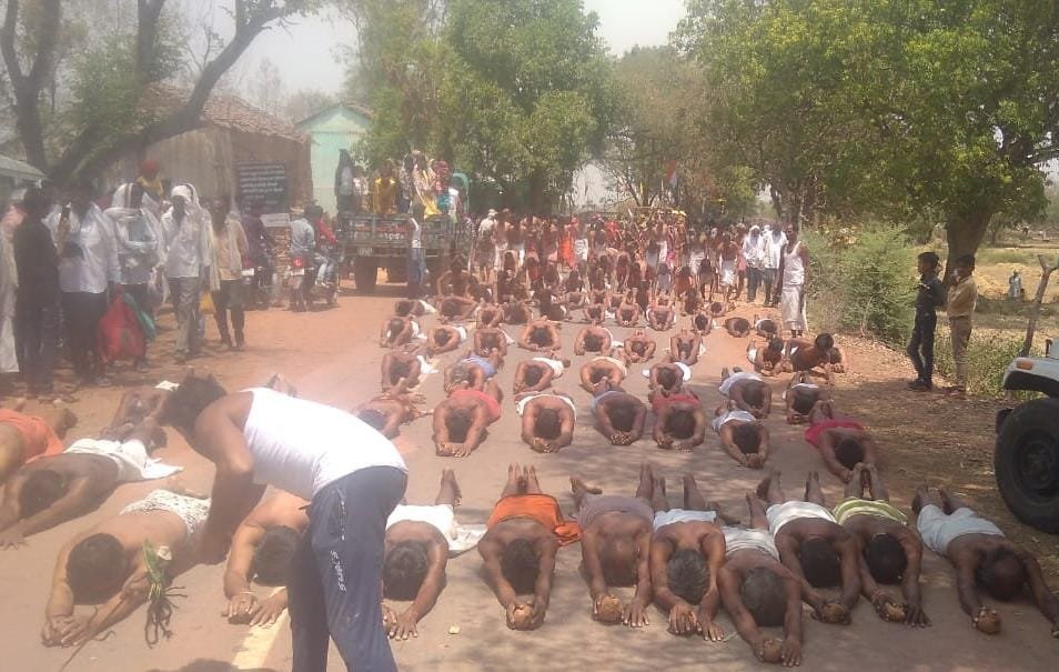 आस्था का दंडवत 42% डिग्री तापमान:न धूप चुभी नं कंकड़ तौलिया लपेट दंड भरते श्रद्धालु