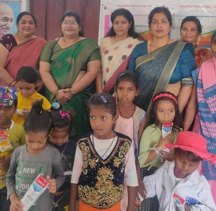 भाजपा महिला मोर्चा द्वारा जिले की नर्मदा आंगनवाड़ी केन्द्रों को वितरित की खाद्य व पाठ्य सामग्री
