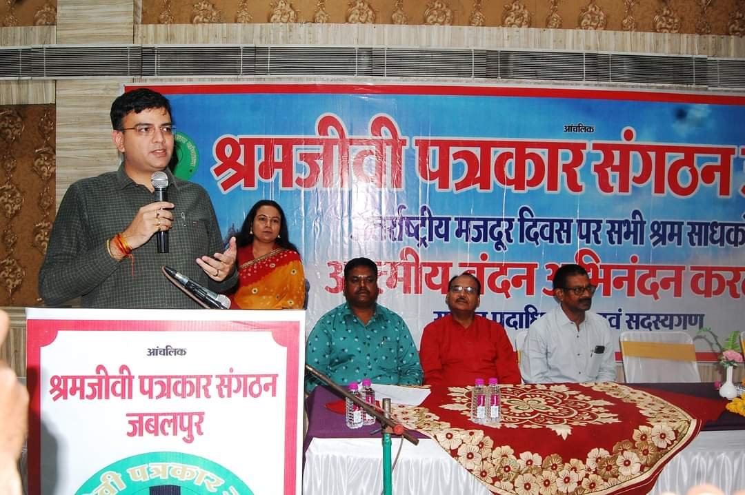 जबलपुर दर्पण नप्र। मजदूर दिवस के अवसर श्रमजीवी पत्रकार संगठन का कार्यक्रम समदडिय़ा होटल बाराट रोड़ में आयोजित हुआ। जिसमें कलेक्टर डॉ इलैयाराजा टी,पुलिस अधीक्षक सिद्धार्थ बहुगुणा, क्षेत्रीय आयुक्त कर्मचारी भविष्य निधि राकेश सहरावत,सहायक श्रमायुक्त राजेश मिश्रा,पूर्व श्रम अधिकारी सुनील श्रीवास्तव, कर्मचारी नेता सतीश शर्मा, श्रमजीवी पत्रकार संगठन के प्रदेशाध्यक्ष दिनेश प्रीत मंचासीन थे। इस अवसर पर वरिष्ठ पत्रकार ओम कोहली,प्रेस में कार्यरत मशीन मेन राम प्यारे,समाचार वितरक बबलू डहेरिया,सुमेरचन्द्र जैन,कम्प्यूटर ऑपरेटर सुशील कोरी को शॉल-श्रीफल व सम्मान पत्र भेंट कर उन्हें सम्मानित किया गया। श्रम साधको के सम्मान समारोह में कलेक्टर इलैयाराजा टी ने कार्यक्रम को संबोधित करते हुए कहां की पत्रकार समाज का दर्पण हैं, प्रशासन को जनता की समस्याओं से अवगत कराते हैं, प्रशासन द्वारा समस्याओं के निराकरण में जो भी मदद होगी आम जनता को सुलभ कराई जाएगी,श्रमजीवी पत्रकार संगठन जबलपुर के अंतर्राष्ट्रीय मजदूर दिवस पर आयोजित श्रम साधकों के सम्मान समारोह में कलेक्टर इलैयाराजा टी ने यह बात कही समारोह में विशिष्ट अतिथि के रूप में पुलिस अधीक्षक सिद्धार्थ बहुगुणा ने कोरोना काल के दौरान पत्रकारों द्वारा निरंतर की गई रिपोर्टिंग को पुलिस कर्मियों जैसी सेवाएं देने का जोखिमकारी बताया,पुलिस और पत्रकारों ने अपनी जान की परवाह न करते हुए निरंतर अपनी सेवाएं प्रदान की इसके लिए पत्रकार एवं प्रेस कर्मी बधाई के पात्र हैं। भविष्य निधि आयुक्त राकेश सहरावत ने इस अवसर पर कहा की पत्रकारों को अपनी एवं अन्य प्रेस कर्मियों की समस्याओं की ओर शासन प्रशासन का ध्यान स्वयं से आकृष्ट करना होगा, क्योंकि कोई भी अधिकारी समस्या के बाद ही उसका निराकरण कर सकता है, प्रेस कर्मियों की जो भी समस्याएं हैं, उसका निराकरण भविष्य निधि कार्यालय में आकर करा सकते हैं। समस्याओं पर प्राथमिकता से विभाग द्वारा ध्यान दिया जाएगा। श्रमिकों को उनकी योजनाओं का लाभ दिलवाने में पत्रकारों की भूमिका सबसे महत्वपूर्ण है, पत्रकार ही समाज का आयना है, इसके अलावा सहायक श्रमायुक्त राजेश मिश्रा ने श्रमजीवी पत्रकारों के हितों में श्रम नियमों का उल्लेख करते हुए उन्हें हर संभव मदद दिलवाए जाने का आश्वासन दिया, वहीं कर्मचारी नेता सतीन शर्मा ने कर्मचारियों की आवाज को बुलंद करने में पत्रकारों को अहम भूमिका बताई। वहीं सेवानिवृत्त श्रमाधिकारी सुनील श्रीवास्तव के द्वारा श्रम अधिनियमों के संबंध में विस्तृत जानकारी प्रदान की और हमेशा पत्रकारों के साथ हर संभव खड़े रहने की बात कही। इस मौके पर कार्यक्रम का संचालन सिमरन सिंह शुक्ला द्वारा किया ग