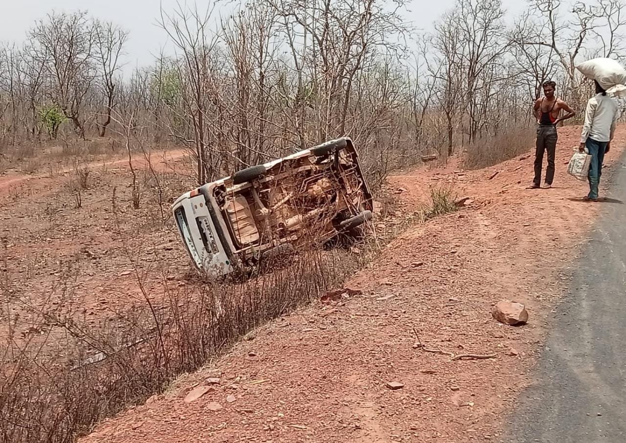 हर्रई रिचकुड़ी मार्ग पर अनियंत्रित होकर पलटी मारुति वेन:दो घायल जबलपुर रिफर