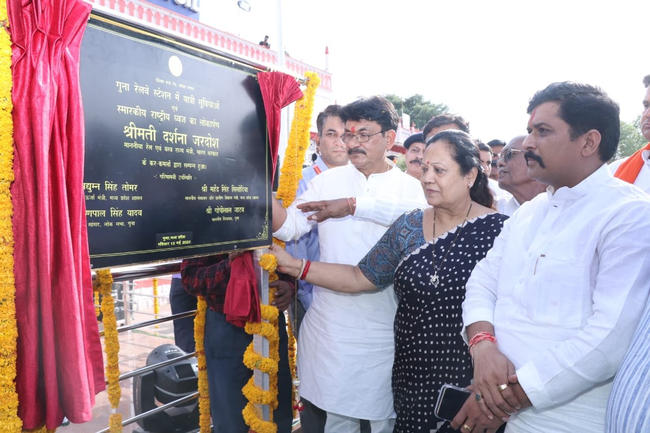 जबलपुर दर्पण। रेल एवं वस्त्र राज्य मंत्री, भारत सरकार श्रीमती दर्शना जरदोश जी के कर कमलों द्वारा आज गुना स्टेशन पर स्मारकीय राष्ट्रीय ध्वज एवं यात्री सुविधाओं का लोकार्पण किया गया।