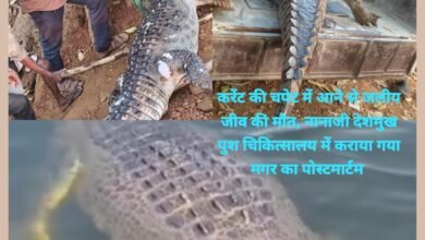 करेंट की चपेट में आने से जलीय जीव की मौत, नानाजी देशमुख पुश चिकित्सालय में कराया गया मगर का पोस्टमार्टम