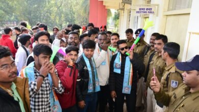 पुंगी बजाते विवि पहुंचे एनएसयूआई कार्यकर्ता